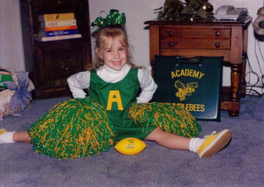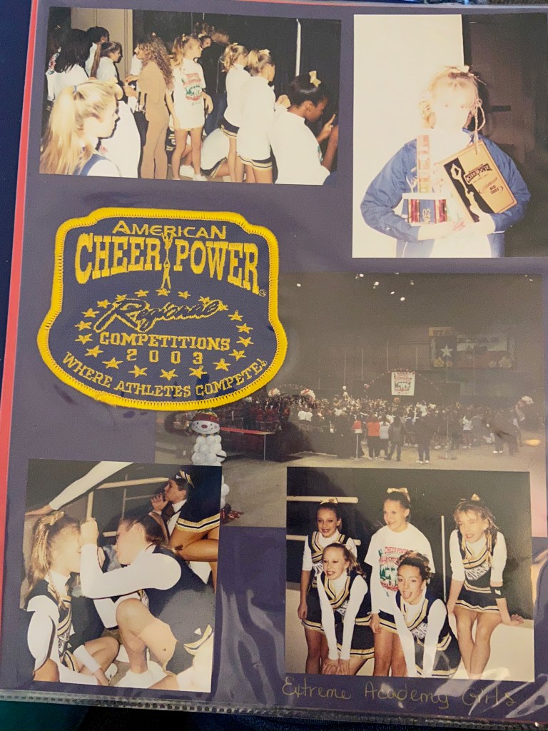 I started cheerleading at 6, ice skating at 7, and gymnastics at 10. I played tee-ball, softball, and basketball every summer. My mom was my cheer coach and my dad was my softball coach, so I never got a break from it. Not that I necessarily wanted one – back then I loved cheerleading (softball not so much) and practiced all the time. Any time I wasn’t at school (and actually, even when I was) I was tumbling, stretching, jumping, practicing.