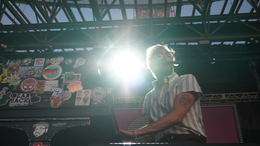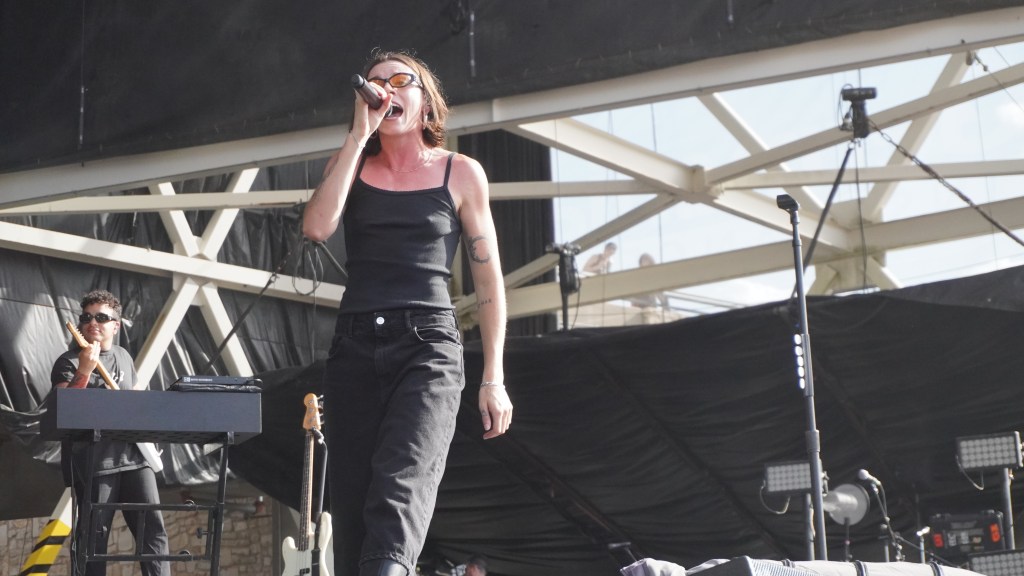The penultimate performance, and also the first that was remotely tolerable heat/sun-wise, was Andrew McMahon in the Wilderness. Andrew has worn many bands’ hats over the last 20+ years, and he gave the people what they wanted by including two hits each from Something Corporate and Jack’s Mannequin. He was also the most interactive with the crowd, starting his set walking into the pit with some winding contraption that I cannot identify and sitting on the rail dividing the pit and floor seats. He also ended his set by deploying an elementary school gym class parachute in the pit, hanging out with festival-goers under it, and then coming through the seats. Also he has a Buc-ee’s sticker on his piano.