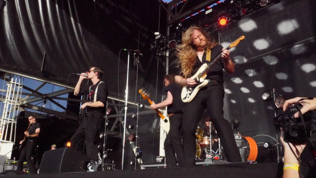 The Maine was next. Since they hail from Arizona, vocalist John O’Callaghan stated that they were used to the heat, but I would just like to point out that the heat in Tempe is not the same heat as Austin. But I digress. I sent a photo of guitarist Jared Monaco to my group chat and said “SOMEONE GET THIS MAN A SCRUNCHIE” because his long, thick hair was everywhere (not in a Dashboard Confessional way) and that would’ve pissed me off long ago. These men were also fully decked out in black and long pants and I just… I know they’re not on stage for THAT long, but good grief. Wouldn’t be me. For their third song, “Loved You A Little,” they brought out Adam from Taking Back Sunday, rocking a burnt orange suit. That song is a collab between the two bands and Charlotte Sands, whom I had the pleasure to interview at ACL last year and ask about that song. After it was over, Adam didn’t seem to want to leave, and let John literally drag him offstage. I’m also very upset with Instagram because it broke and didn’t post the video I shot of that song, and didn’t save it. After that, I started recording everything in the native camera app and then posting to Instagram. That’s not very RAWR XD of you, Meta.