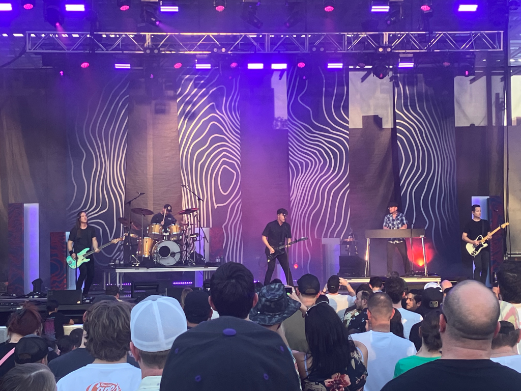 Jimmy Eat World’s set came to a close with “Bleed American” off the 2001 album of the same name, and the song everyone was waiting for, “The Middle,” also from that album. It was still warm during most of their set, and there were some people in the audience taking it understandably easy, but it’s safe to say that easy went out the door when “The Middle” started.