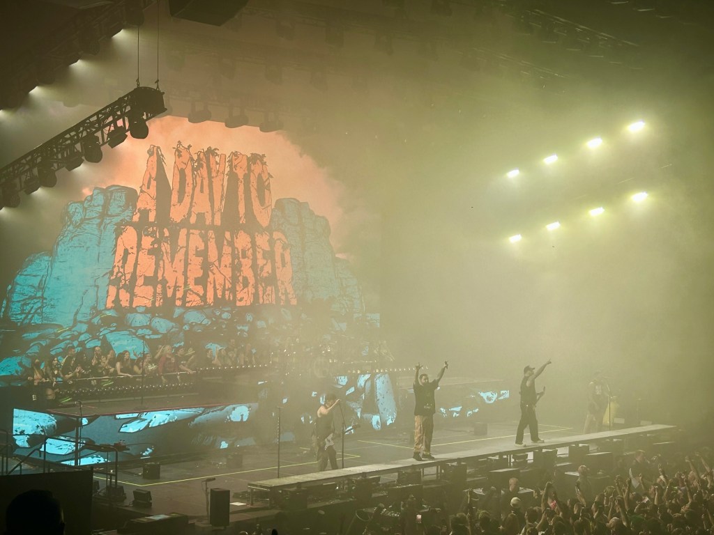 The last time I saw ADTR was at the AT&T Center in San Antonio opening for blink-182 during the Matt Skiba years (2016?). They had to start “The Downfall of Us All” over because someone goofed, and this time, they opened with it. This band actually has so many legendary songs, even if they do just describe themselves as “pop punk with breakdowns” as Jeremy said during the show. They also had fans on stage behind the platform! I’m not sure how people got to go back there (since I missed the beginning of the show) but I’m pretty sure the couple next to me during Yellowcard popped up on stage for ADTR.